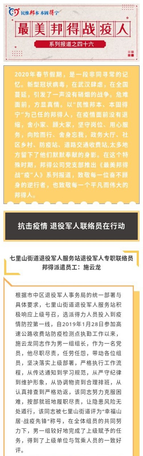 最美邦得戰(zhàn)“疫”人—— 系列報道之(四十六)